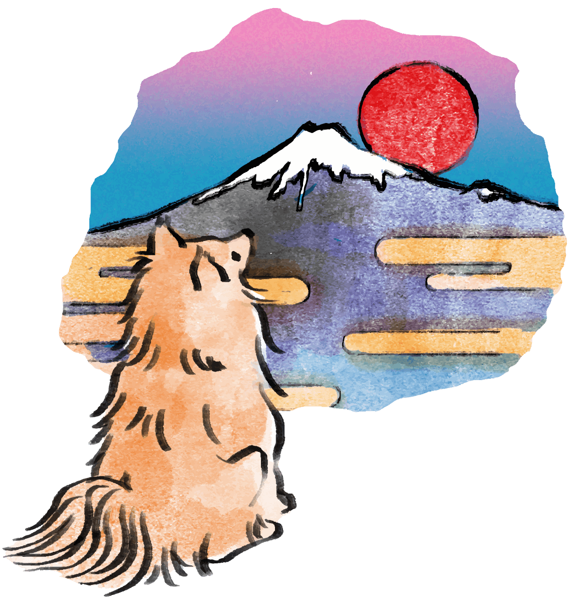 匕年柴犬的和风(富士山)-2018干支插图后身坐着