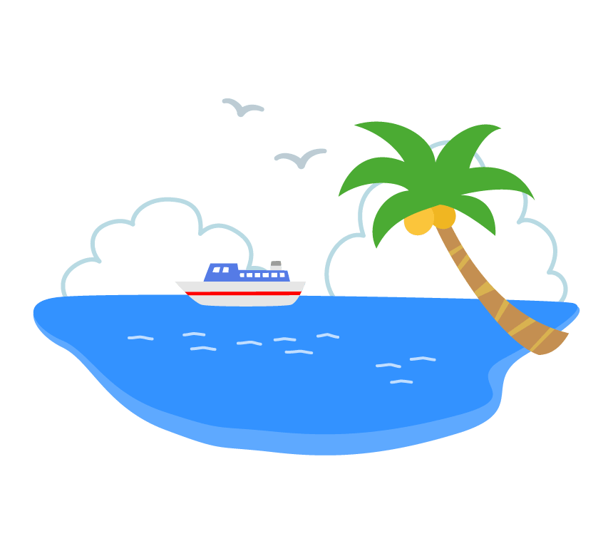 海、棕榈树和船